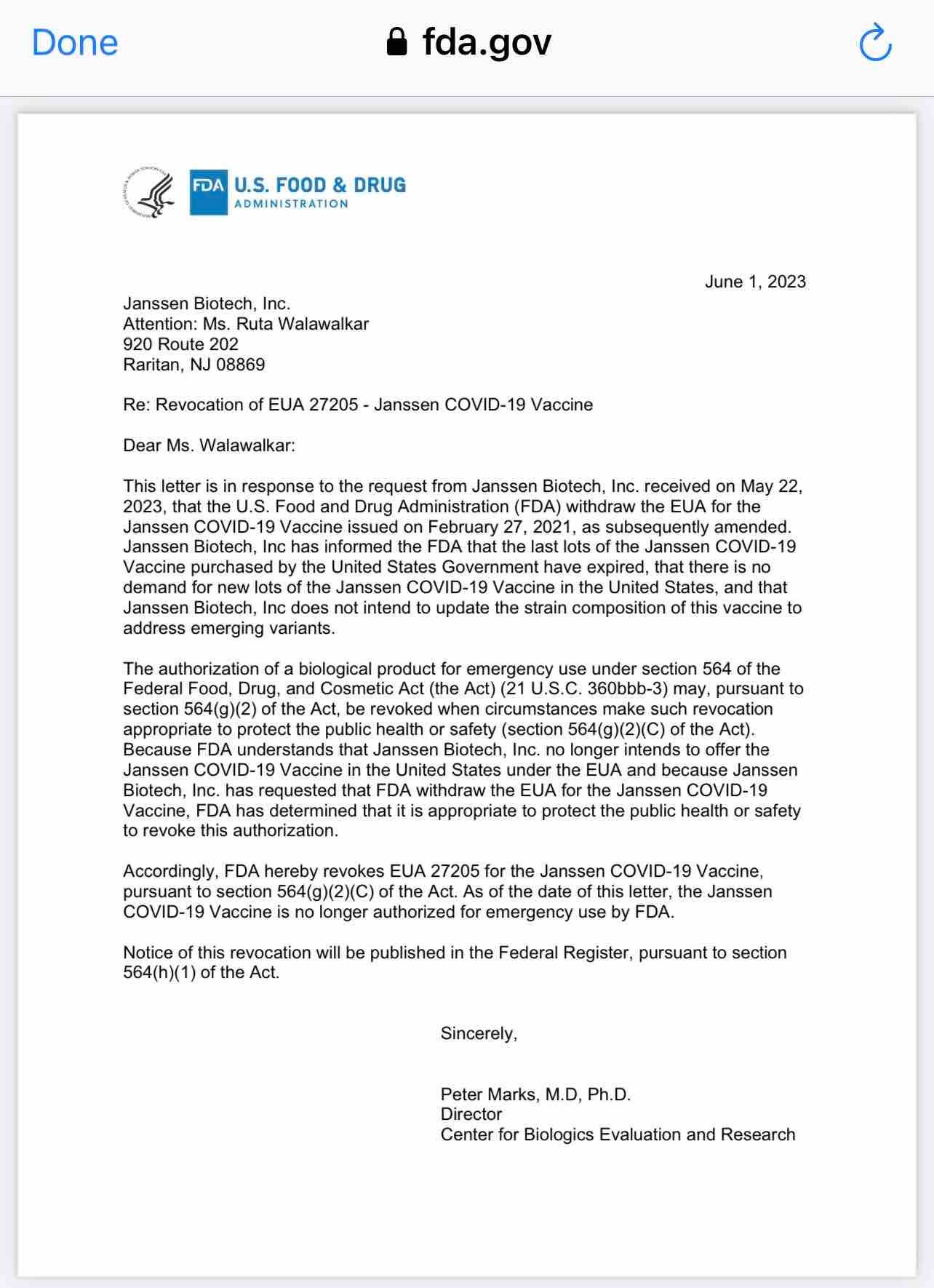 Without the EUA it can’t be marketed. Doesn’t matter though, since they’re not making it anymore and existing lots have expired. I think the end of the EUA was previously discussed here. Looks like mRNA won out.