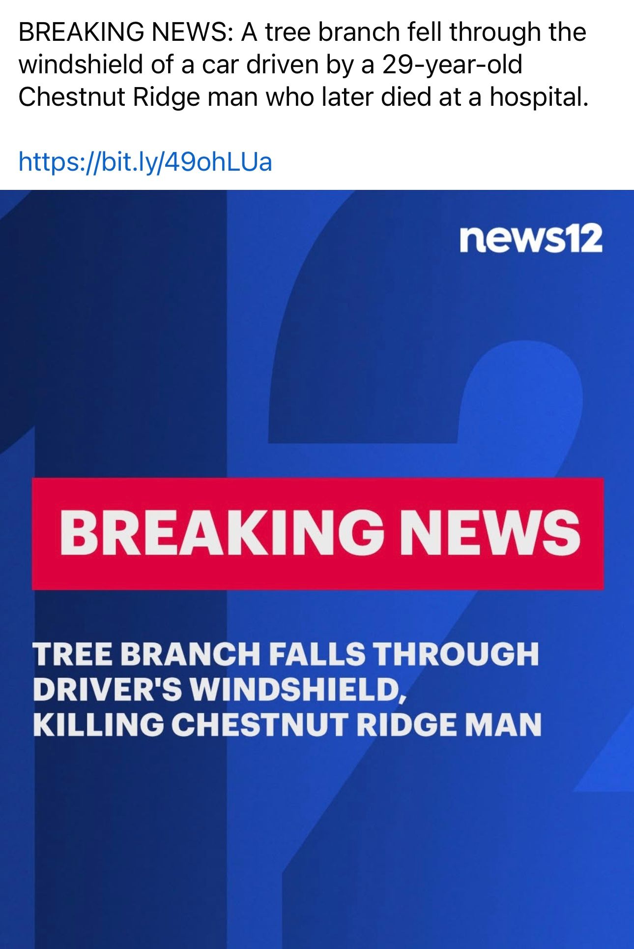 Exact thing happened to a doctor driving on 680 while I drove that same road commuting to and from work. It is a chilling anecdote. I think I posted about it at the time. https://www.ktvu.com/news/internist-at-john-muir-hospital-dies-after-tree-falls-on-i-680-in-danville