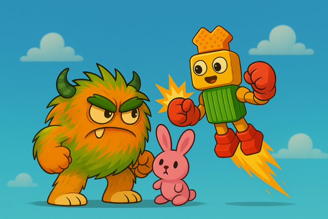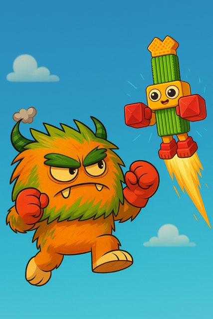 Then my son said (of course he says this), can you make her robot fight my monster?