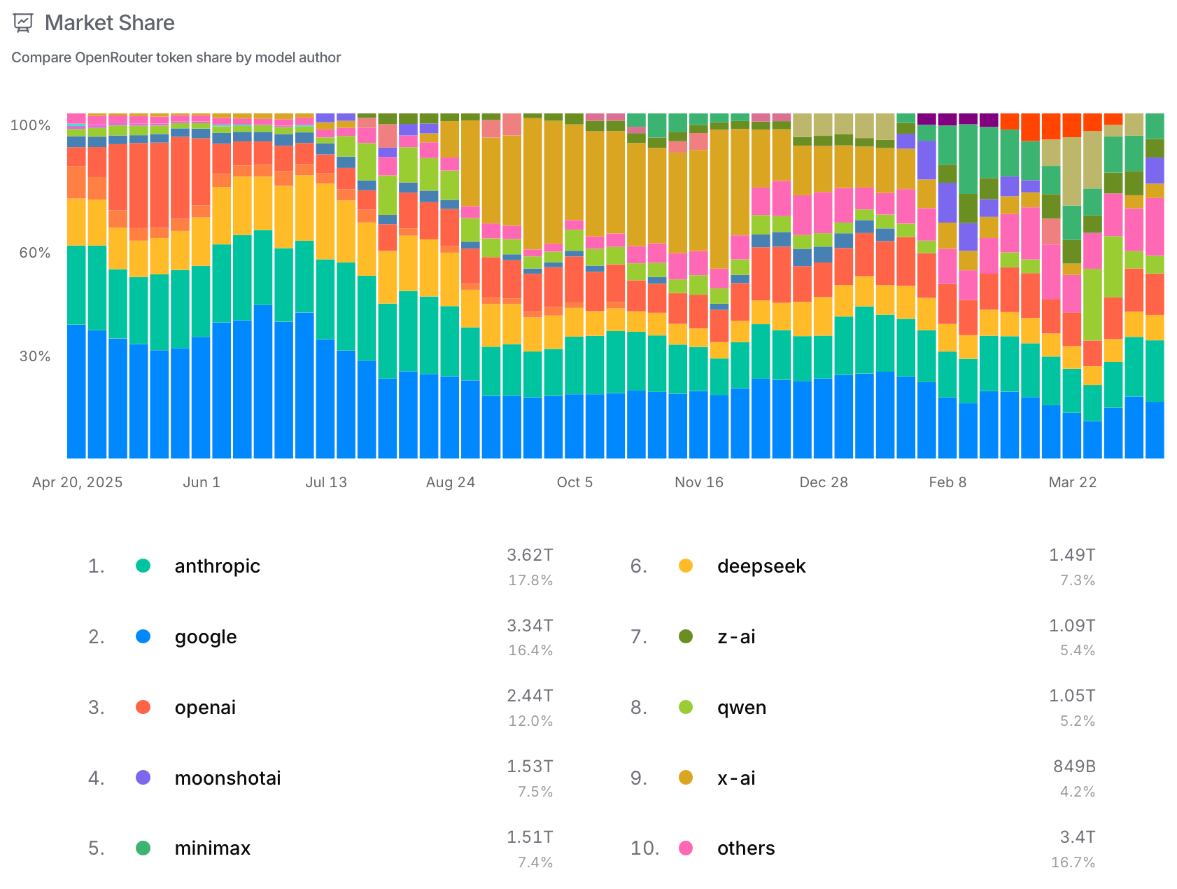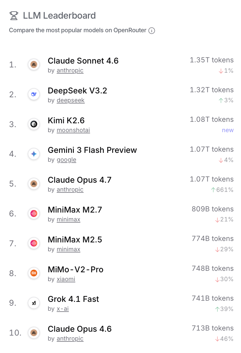 Was looking at some stats provided by OpenRouter.ai (a business/platform that helps other businesses/programs direction their AI-related queries/workloads to different AI models/providers; so this is geared more towards business/programmatic use of AI models rather than direct consumer use).